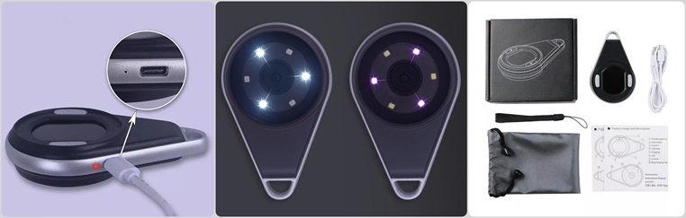 3. Short press the light bulb icon to turn on the white LED light, then press to turn on the purple light,