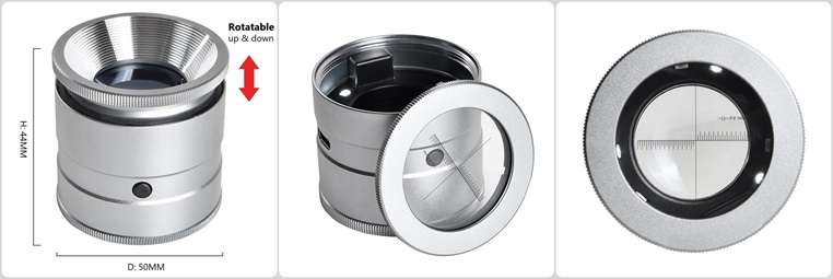 2. Made of aluminum alloy; rotating the upper cover can adjust the clarity, rotating the lower cover can remove the lens for better scale