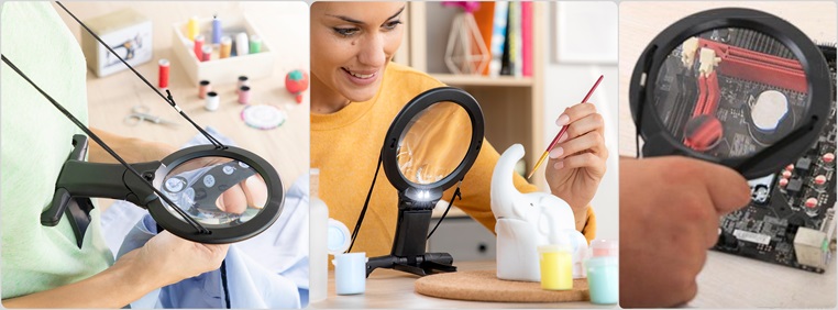 2. Can be used as a handheld, neck wearing or desktop magnifier