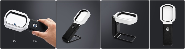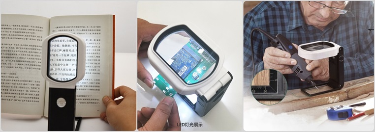 2. Can be used as a handheld or desktop magnifier, the support part is with scale