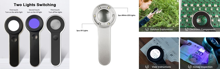 3pcs white led light+3pcs UV light